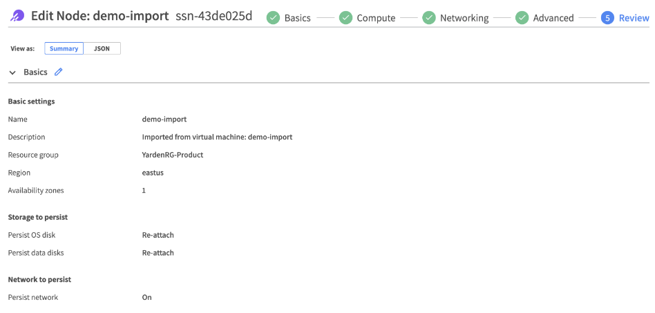 In the Review page you can see a summary of the configuration and edit if necessary.